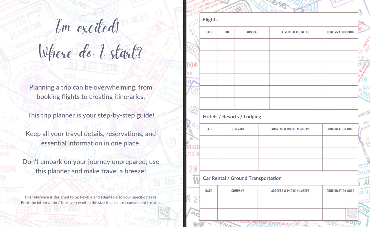Embark on your adventures with confidence using our Travel Planner and Journal – the perfect blend of simplicity, reliability, and convenience! Whether you're exploring your own backyard or jet-setting across the globe, our toolkit ensures you stay organized, even in unexpected situations like losing mobile phone service or, heaven forbid, your device!